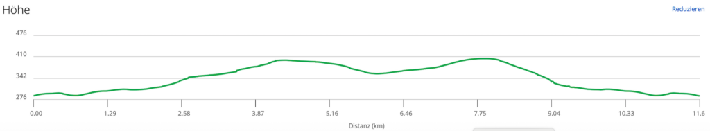 Distanz: 11,6 km | Höhenmeter: 180 m (violet)